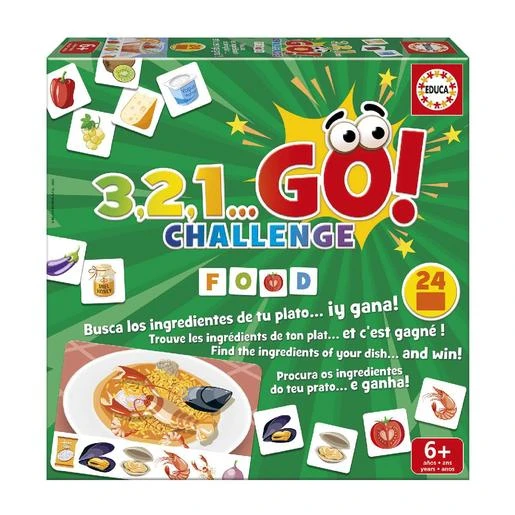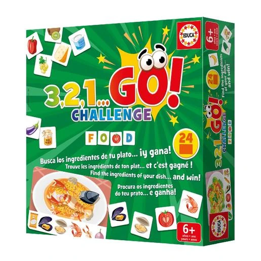 Educa Borrás – 3, 2, 1… Go! Challenge Food – Juego de mesa, un divertido juego de mesa de agudeza visual.