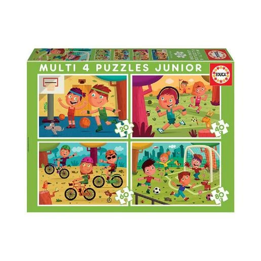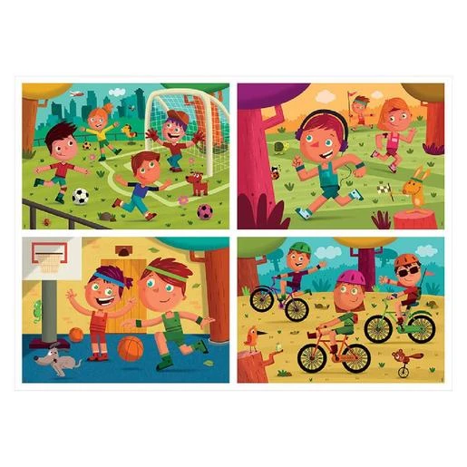Educa Borras – Multipuzzle junior deportes, un set con 4 puzzles inspirados en varios deportes.
