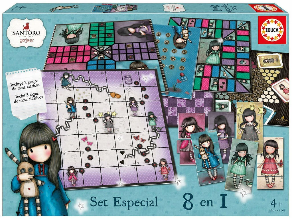 ¡Si eres un auténtico fan de las Gorjuss, este es tu set! ¡Juega a todo lo que puedas imaginar junto a tus personajes favoritos! ¡Con el nuevo y alucinante 8 juegos en 1 de Educa!