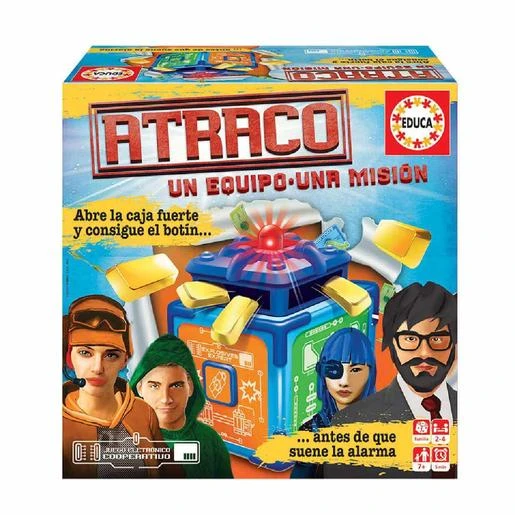 Gran atraco – juego de mesa, un juego cooperativo de suspense donde los jugadores intentarán abrir una caja fuerte muy protegida.