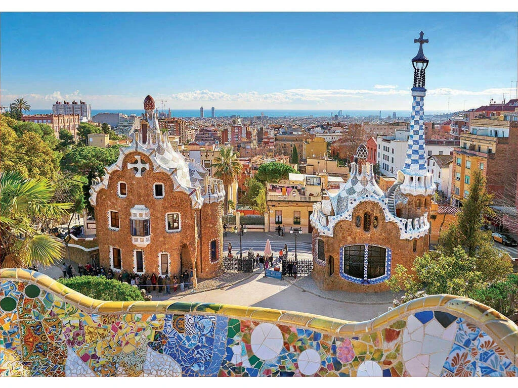 Construye una imagen impresionante de la genial ciudad de Barcelona desde el mágico Parc Güell, prepárate para unir piezas hasta crear esta impresionante instantánea desde lo más alto del parque y con la ciudad de Barcelona y su mar al fondo. Un precioso puzzle para los amantes de la ciudad catalana y su impresionante arquitectura.