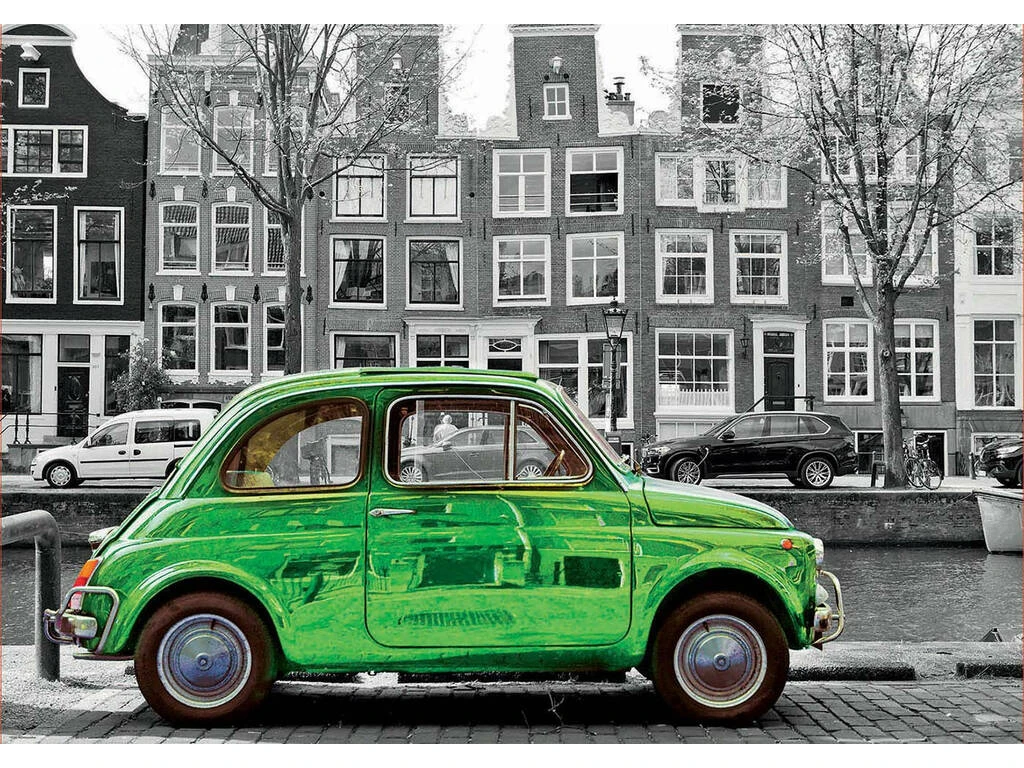Consigue este sorprendente puzzle que muestra una genial imagen con el fondo en blanco y negro, y un coche clásico en color verde muy vivo. Una imagen de una de las calles de Amsterdam, que a formar con piezas de la mejor calidad, troqueladas para que encajen a la perfección y muchas sorpresas más. ¡El complemento ideal para decorar cualquier habitación de casa, oficina o cualquier lugar! ¡Encuentra más puzzles con imágenes que te dejarán con la boca abierta!