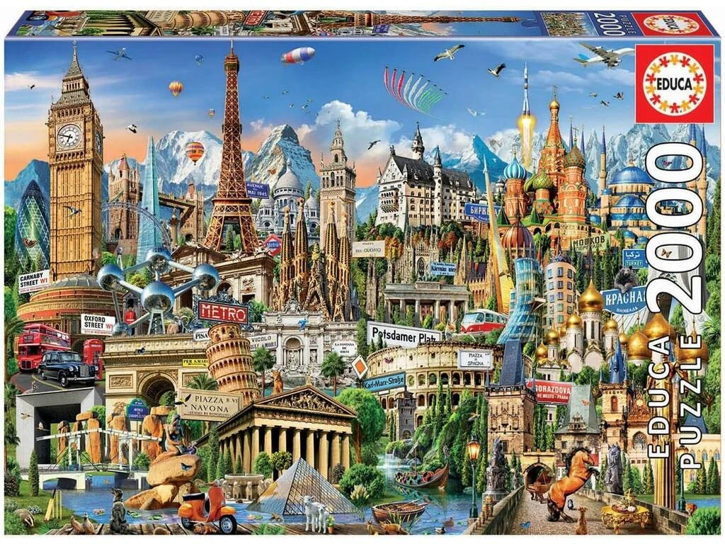 Si tu pasión en esta vida es viaje, puedes comenzar, llevarte un adelanto y hacerlo posible con el Puzzle 2000 Símbolos De Europa Educa 17697.