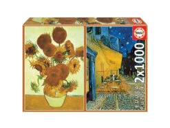 ¡Acepta un doble reto y disfruta como nunca antes! ¡Gracias al Puzzle 2×1000 Los girasoles + Terraza de Café por la Noche de Van Gogh de Educa!