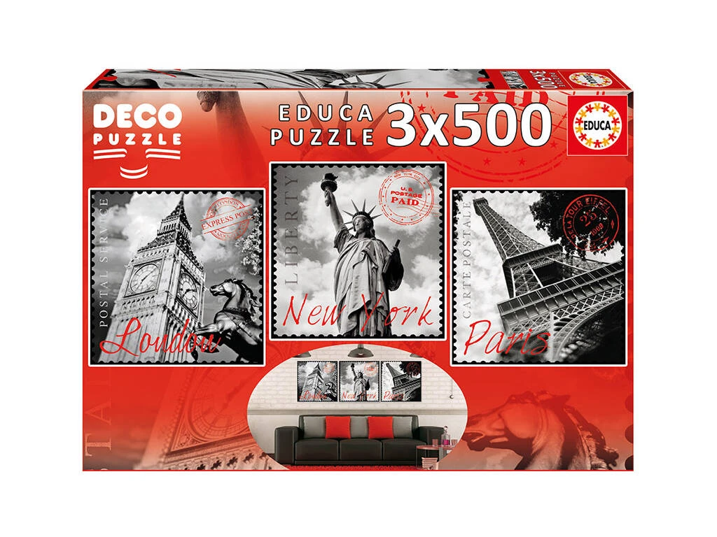 Contenido: 3 puzzles de 3 ciudades diferentes (Londres, New York y París).