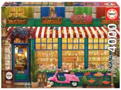 Hazte con este precioso reto de cuatro mil piezas, un reto a todo color en el que se puede ver la fachada de un edificio con una librería clásica, con animalitos a la vista, una moto clásica rosa en la entrada y muchas sorpresas más. Comienza esta aventura y disfruta de un puzzle de gran calidad, con piezas bien troqueladas que encajan a la perfección y perfectamente ilustradas.