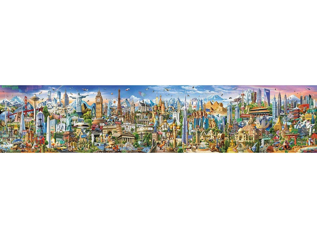 Prepárate para un recorrido por los lugares más emblemáticos del mundo, gracias a este genial puzzle de más de 40 mil piezas, un puzzle a todo color con un tamaño alucinante. Recorre cada uno d ellos lugares más famosos de las principales ciudades del mundo, pieza a pieza. ¡Al finalizar el puzzle tendrás una imagen gigante con detalles en pequeño tamaño que te sorprenderán!