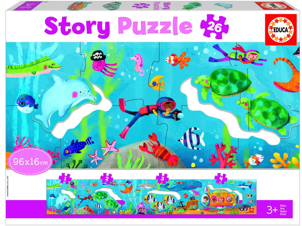 ¡Descubre los tesoros y las sorpresas que hay en lo más profundo del mar! ¡Gracias a este Story Puzzle 26 Piezas Mundo Submarino de Educa!