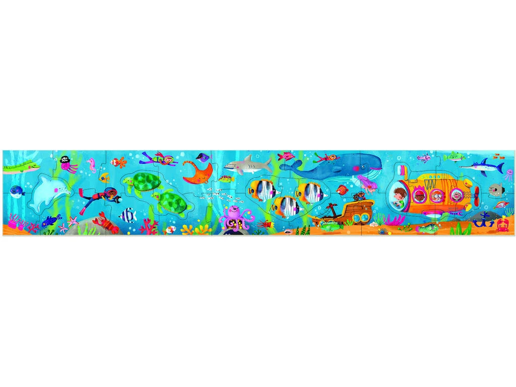 Incluye: 1 caja de almacenaje ilustrada y 1 puzzle panorámico Mundo Submarino de la colección Story Puzzle